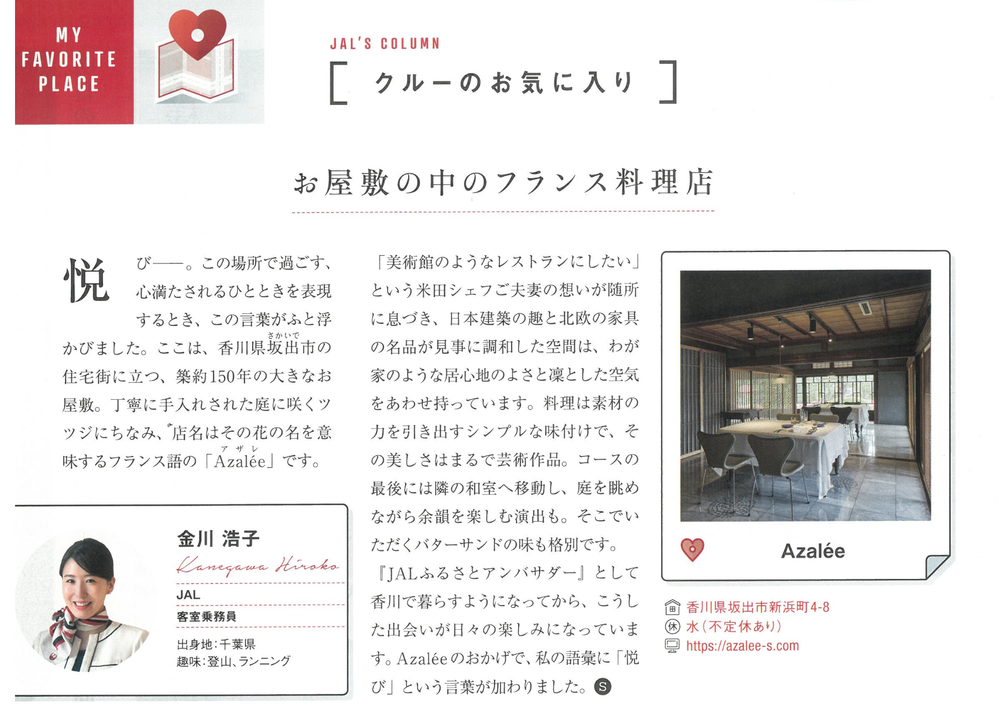 【JALの機内誌に掲載】Azalée(香川県坂出市のフレンチレストラン・アザレ)